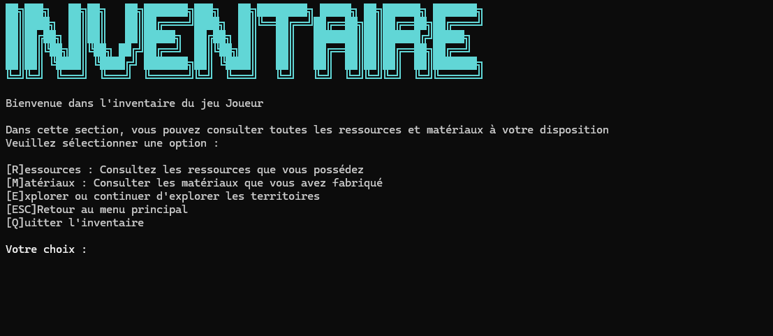 Jeu d'aventure textuel en C# où le joueur doit survivre en explorant une carte 2D, en collectant des ressources et en craftant des objets. Le jeu comprend un système de sauvegarde JSON, une gestion d'inventaire complète et une progression temporelle.